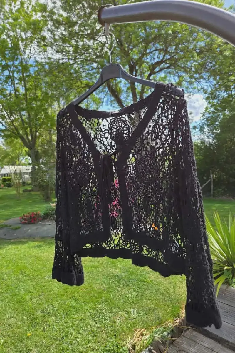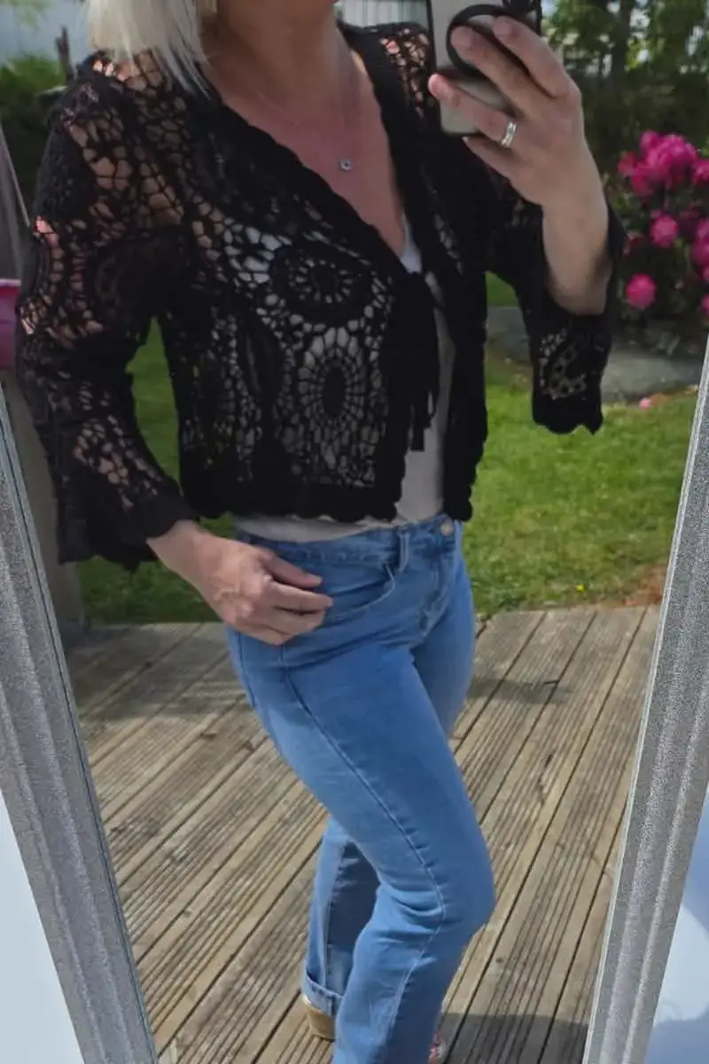 Apportez une touche d’élégance et d’originalité à votre tenue avec ce magnifique gilet en crochet.