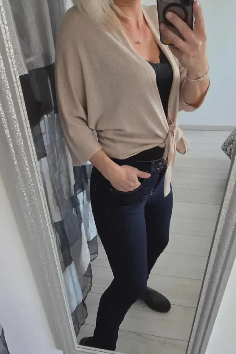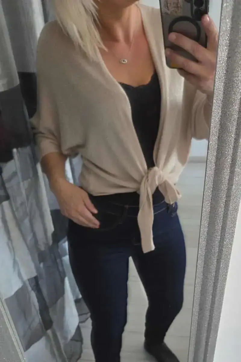 Ses manches 3/4 et sa coupe légère en font l’accessoire idéal pour compléter une robe,