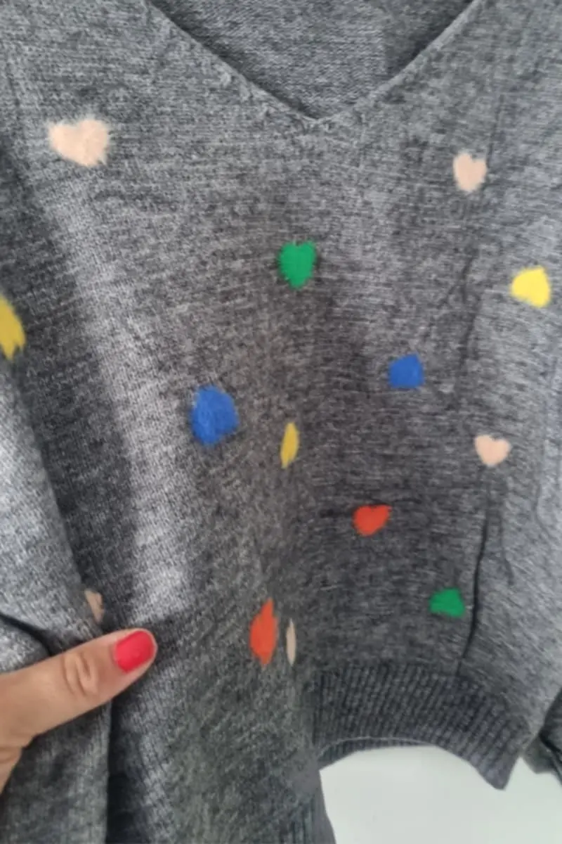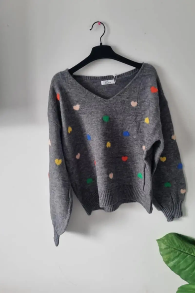 Pull gris « coeur »