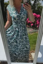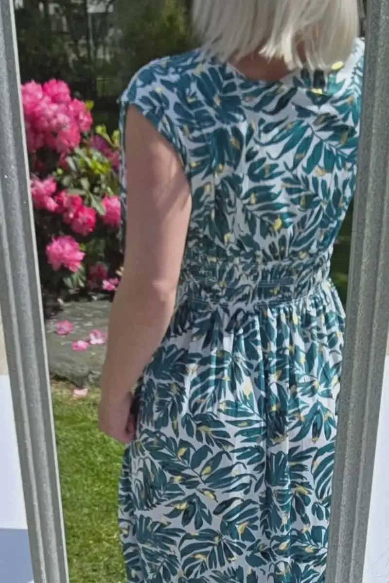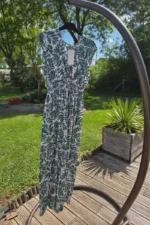 Le secret de cette robe c’est sa matière qui est ultra extensible, sa large bande smockée sous poitrine qui donne un joli tombé.