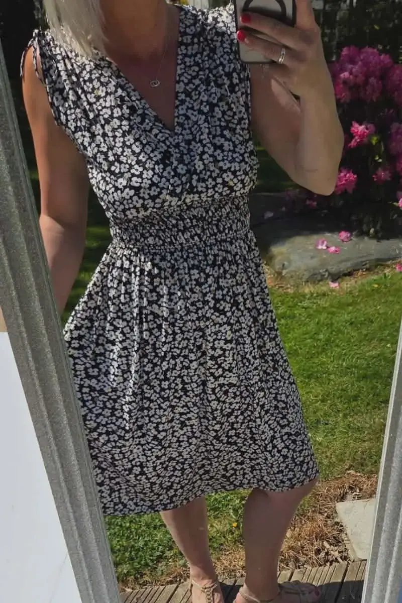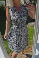 Le secret de cette robe c’est sa matière qui est ultra extensible, sa large bande smockée sous poitrine qui donne un joli tombé.