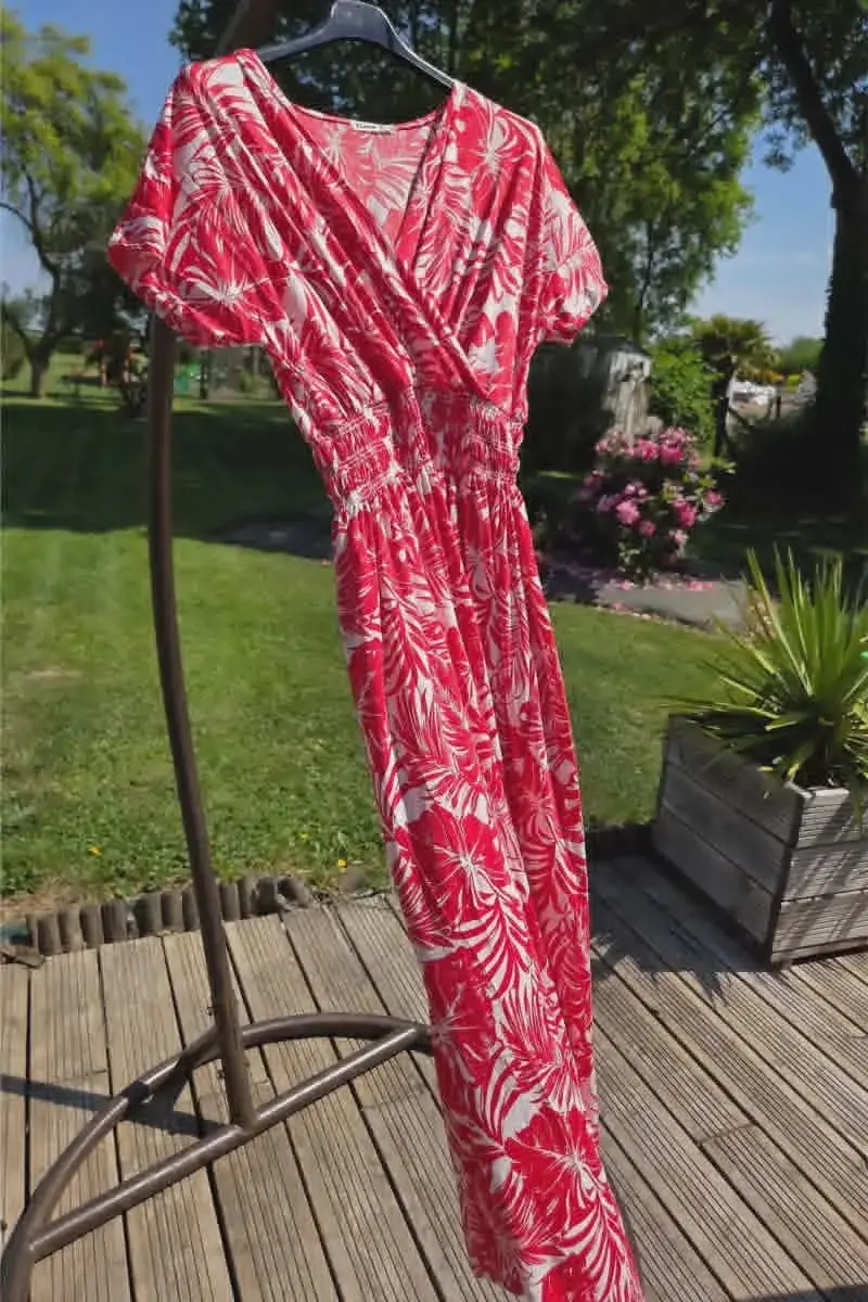 Magnifique robe magique fluide à imprimé fleuri, parfaite pour un look chic et décontracté.