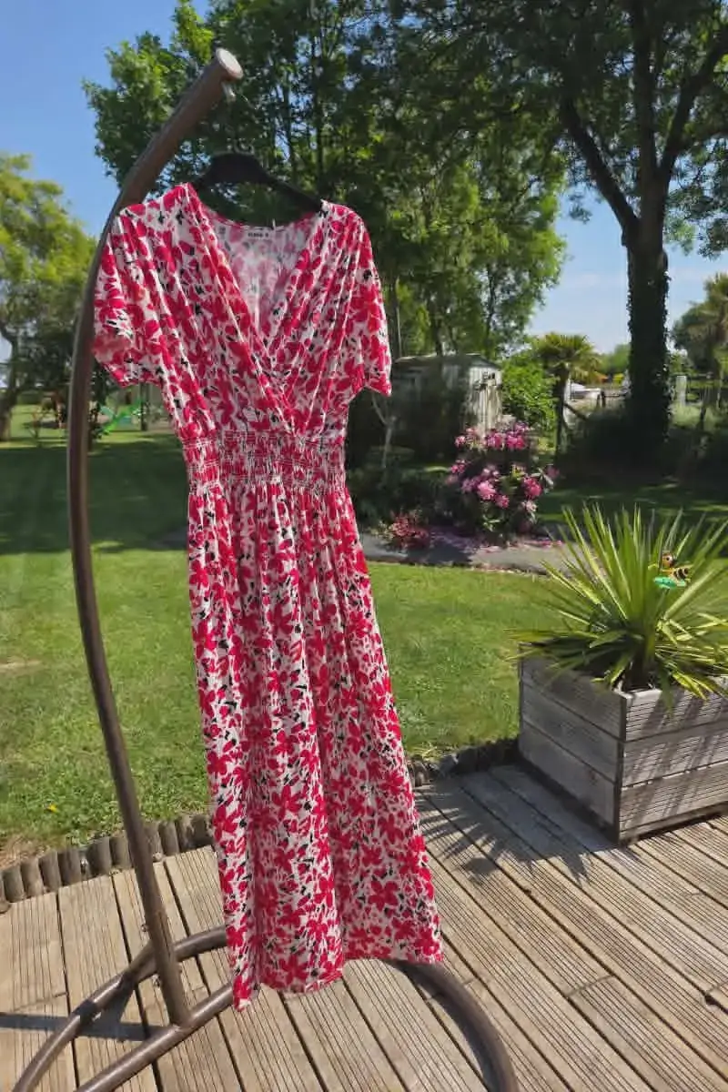 Magnifique robe magique fluide à imprimé fleuri, parfaite pour un look chic et décontracté.