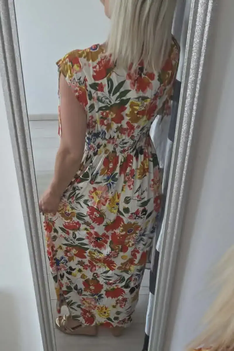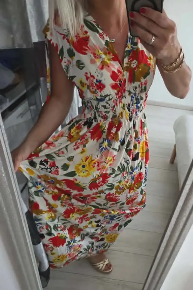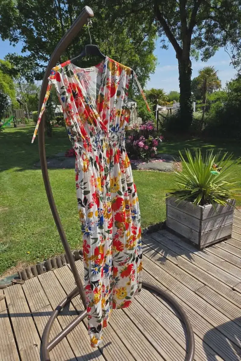 Magnifique robe magique fluide à imprimé fleuri, parfaite pour un look tropical.