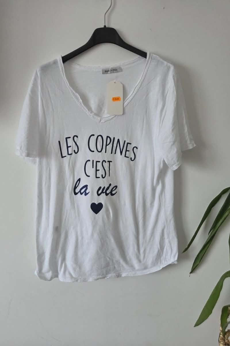 Haut léger et agréable à porter avec l’inscription « Les copines c’est la vie »